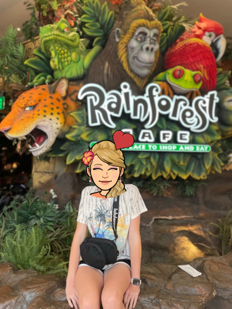 A friend of mine from out of state, recently asked me what my favorite restaurant at the Mall of America in Bloomington, MN was, so I thought I would share my answer to this question with you! After much consideration, I have come to the conclusion that I my favorite restaurant at MOA is Rainforest Cafe. Rainforest Cafe is located on level 3 of the mall, on the South end, near Crayola Experience. If you’re coming to the mall for a family friendly experience, or to stop at a themed gift shop, Rainforest Cafe is the place to be. The experience is outstanding with electronic animals and storm sound effects to make you feel like you are actually in the jungle. There is plenty of seating where you can witness all the magic of the rainforest. Even the bathrooms are themed! If you are from out of town, you can order a souvenir cup to take with you. On your way out, make sure to take a look at the wonderful gift shop to take a piece of the memory with you. Outside of the restaurant there is a mechanical gator that is there to greet you and wish you good luck on your travels. So next time you find yourself at the Mall of America, I hope you find time to visit Rainforest Cafe! Bye Friends!
